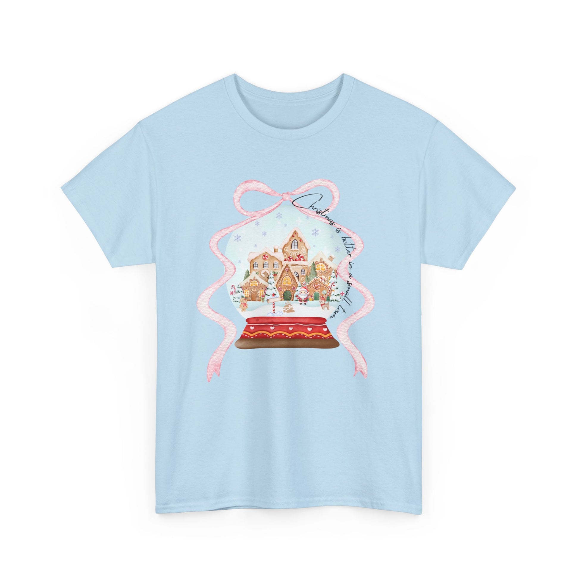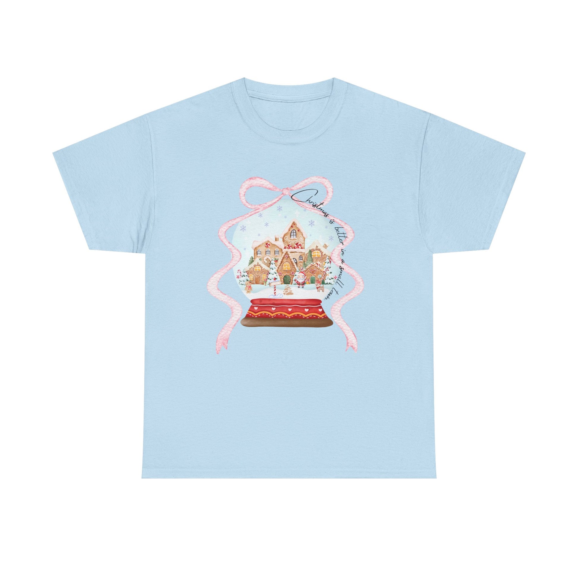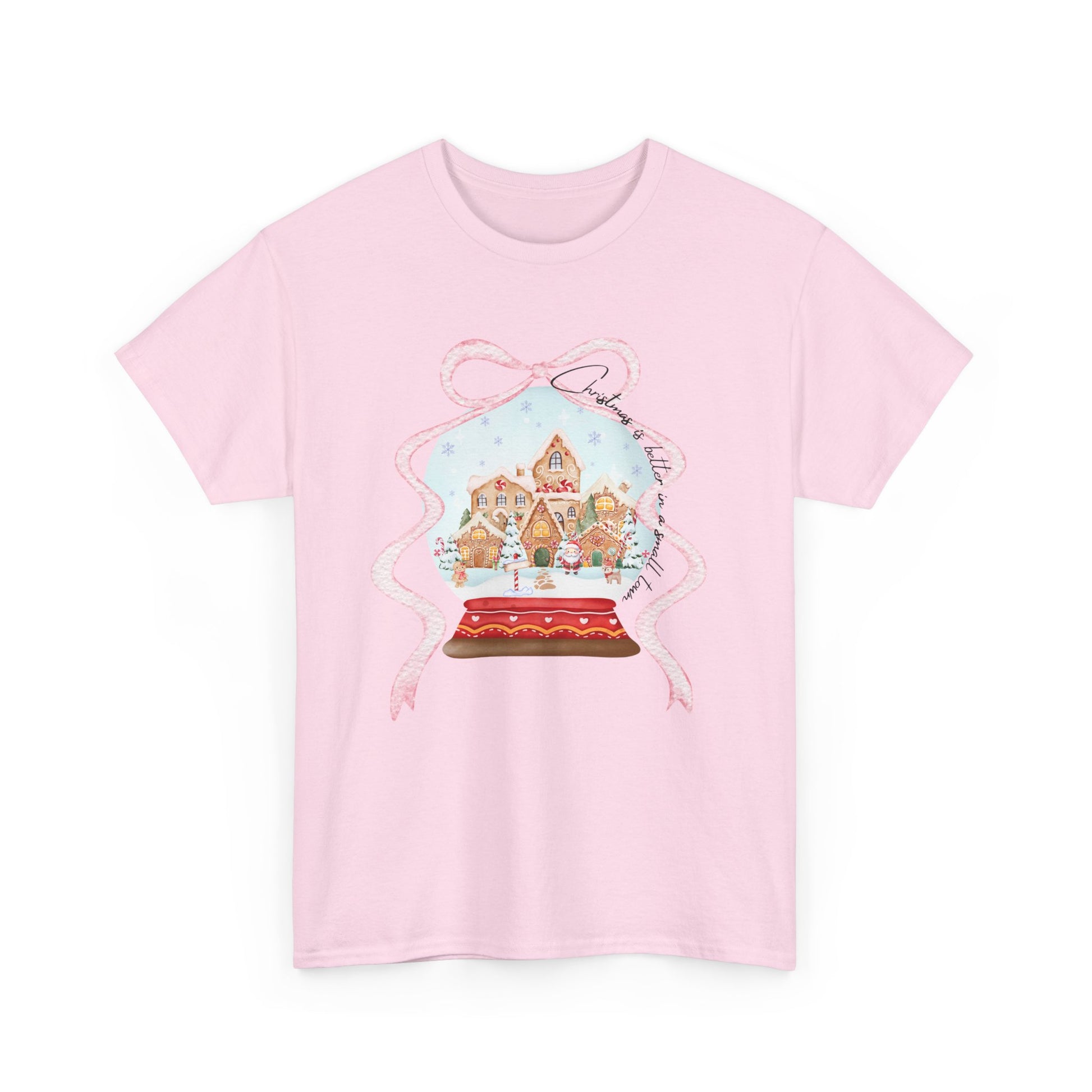 This Christmas-themed T-Shirt brings the cozy and festive atmosphere of a small town gingerbread town. Perfect for those who love the holiday season and want to showcase their holiday spirit. Ideal for adults looking for a comfortable and durable tee for the Christmas celebrations.