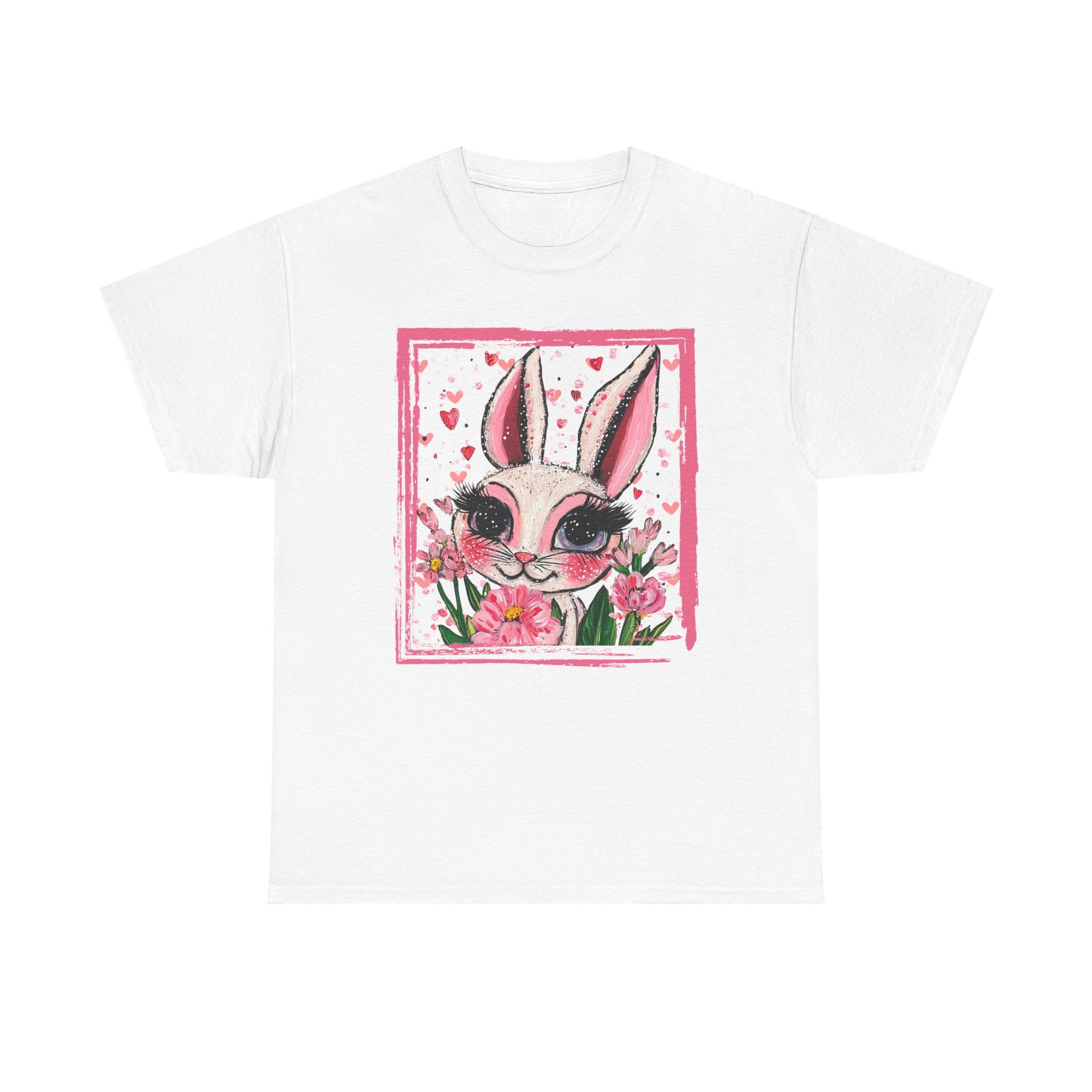 Easter Bunny Unisex Tee with Tulips and Flowers