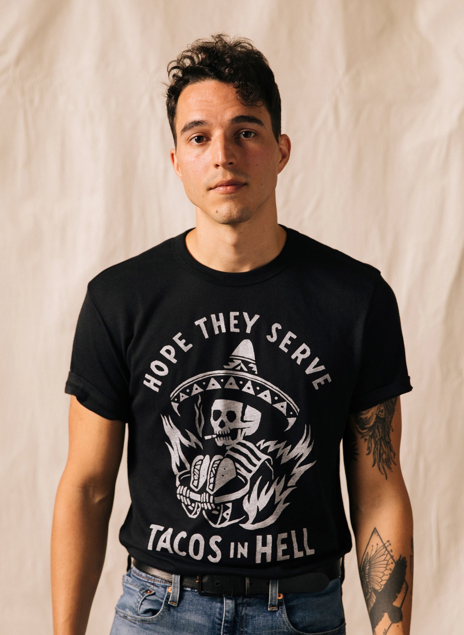 Where there are tacos, how bad can a place really be? Declare your undying love for the mouthwatering Mexican street food with this vintage-inspired unisex graphic tee.