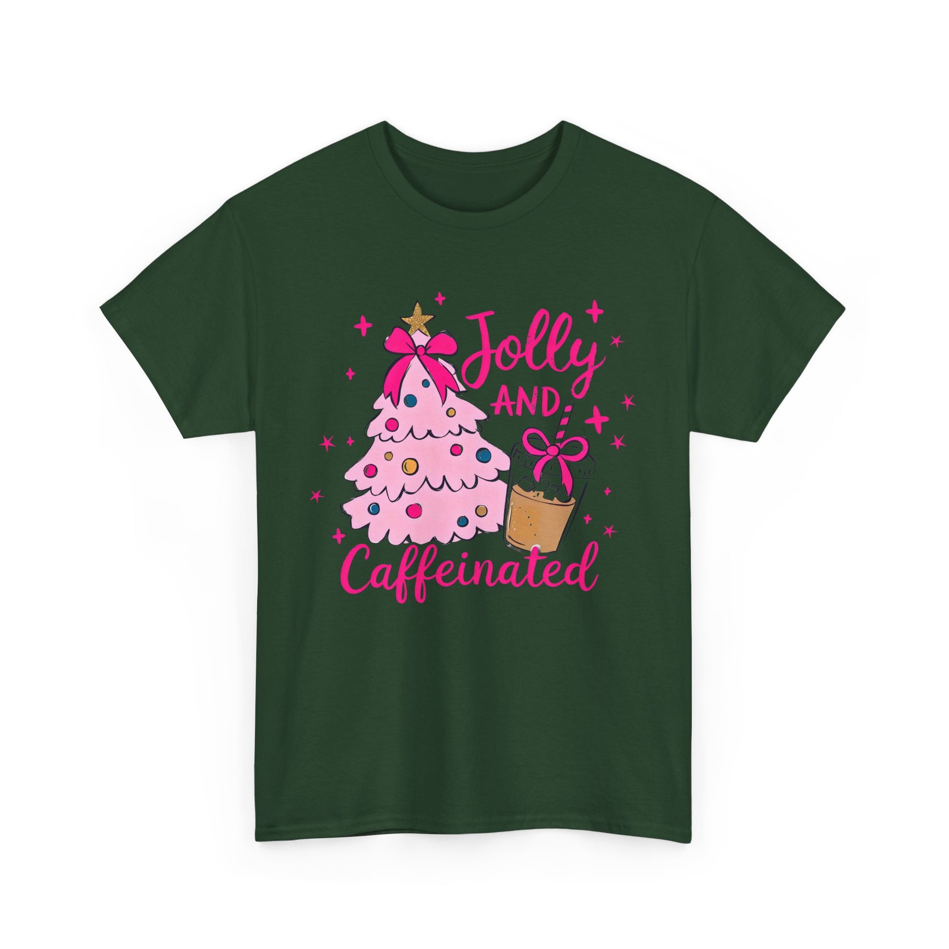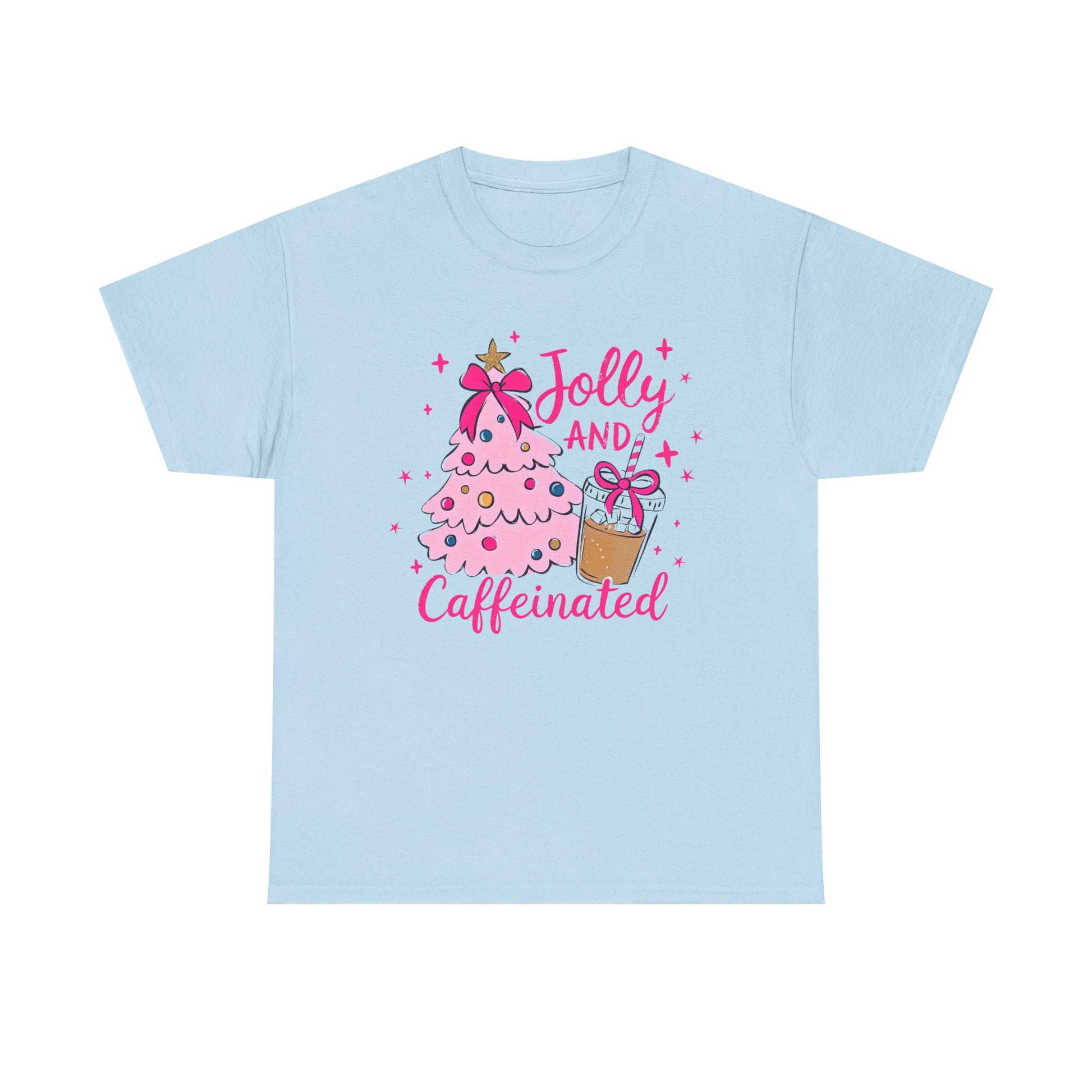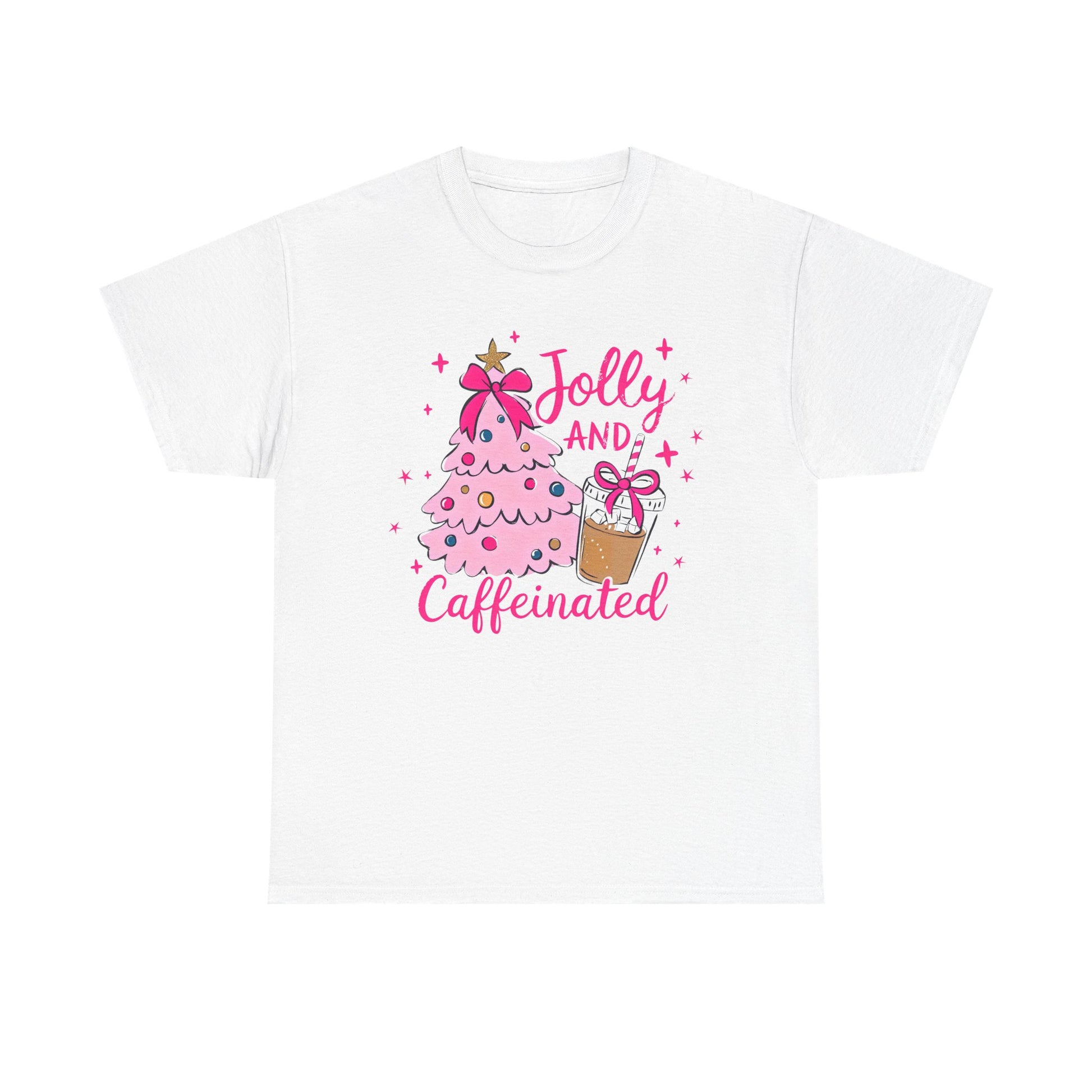 Jolly & Caffeinated Tee, Christmas Gift, Holiday Shirt, Festive Apparel, Unisex Cotton Tee, Fun Holiday Style