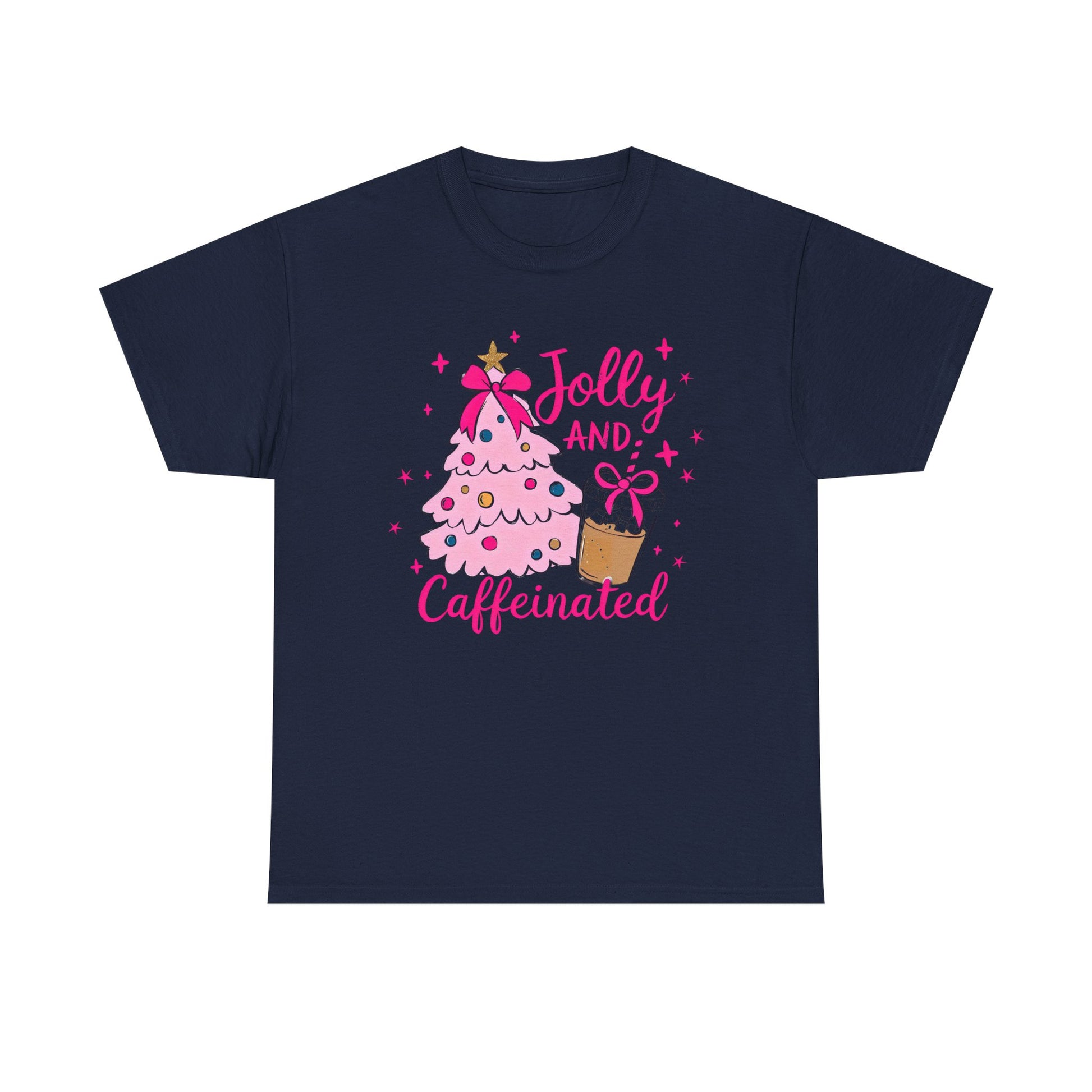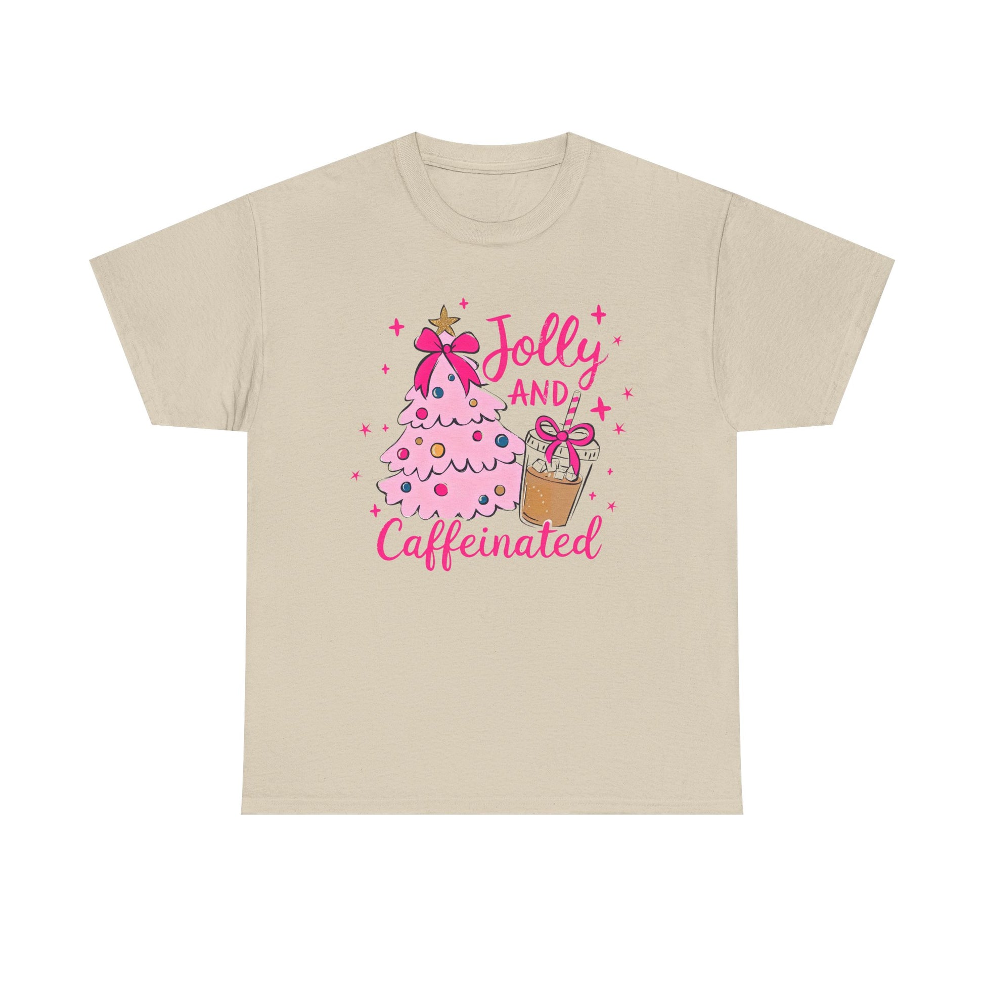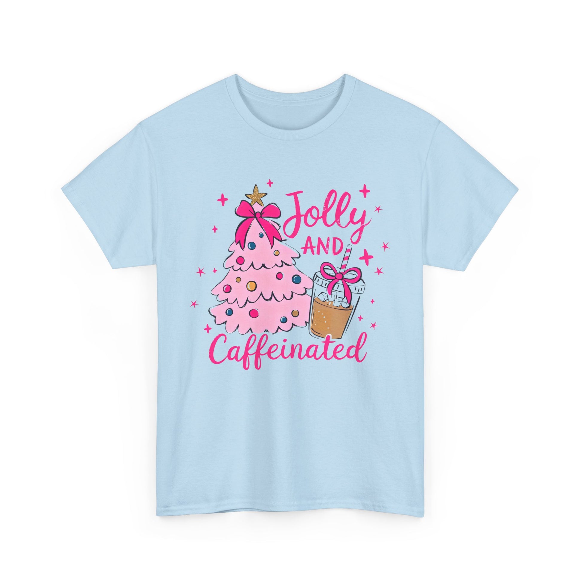 Jolly & Caffeinated Tee, Christmas Gift, Holiday Shirt, Festive Apparel, Unisex Cotton Tee, Fun Holiday Style