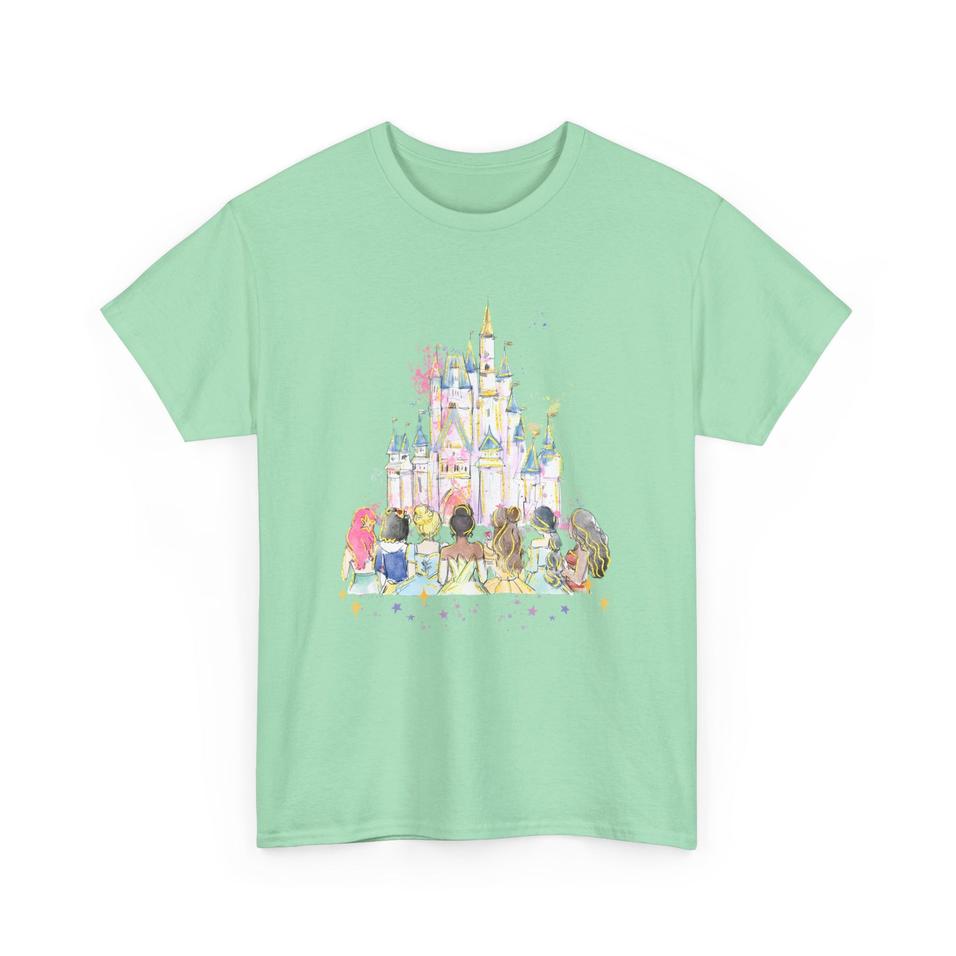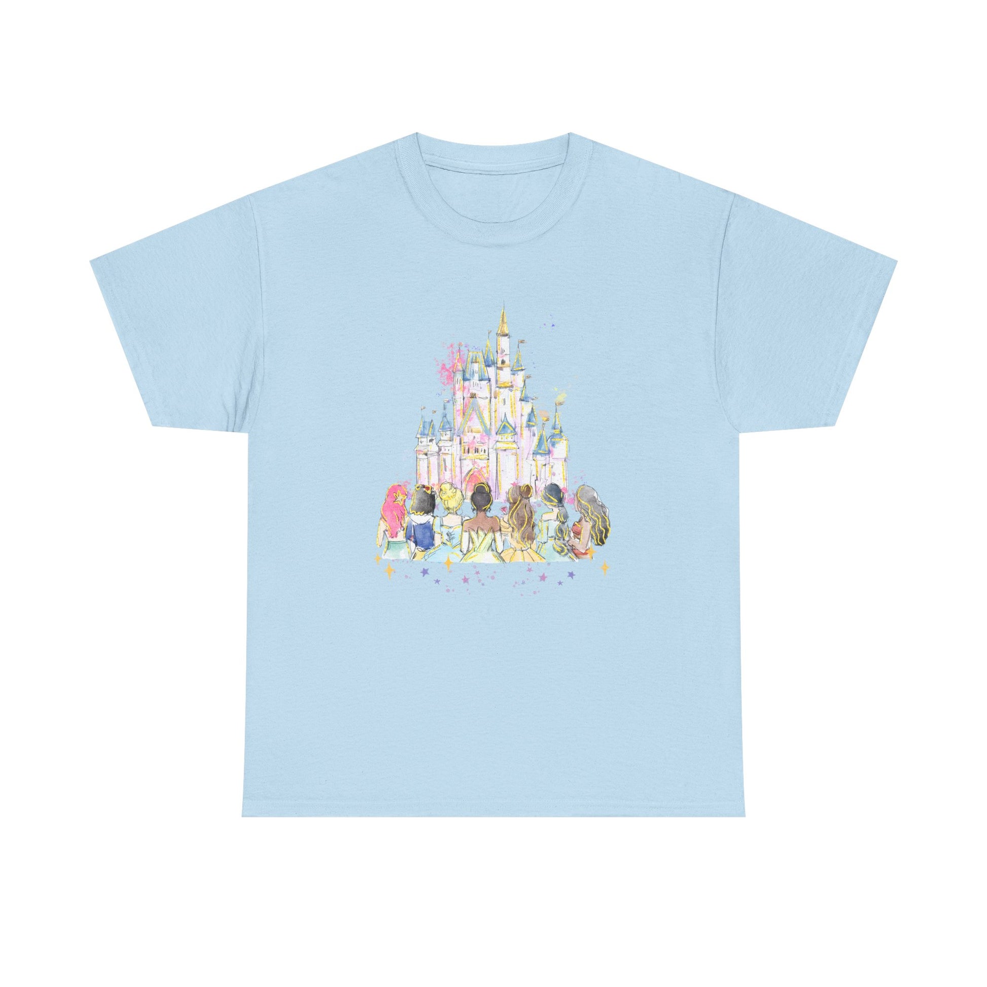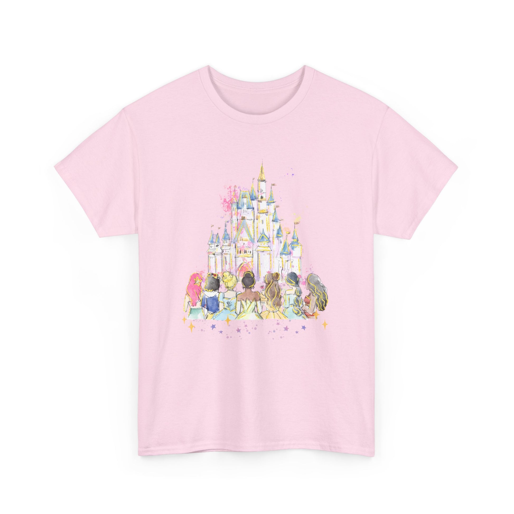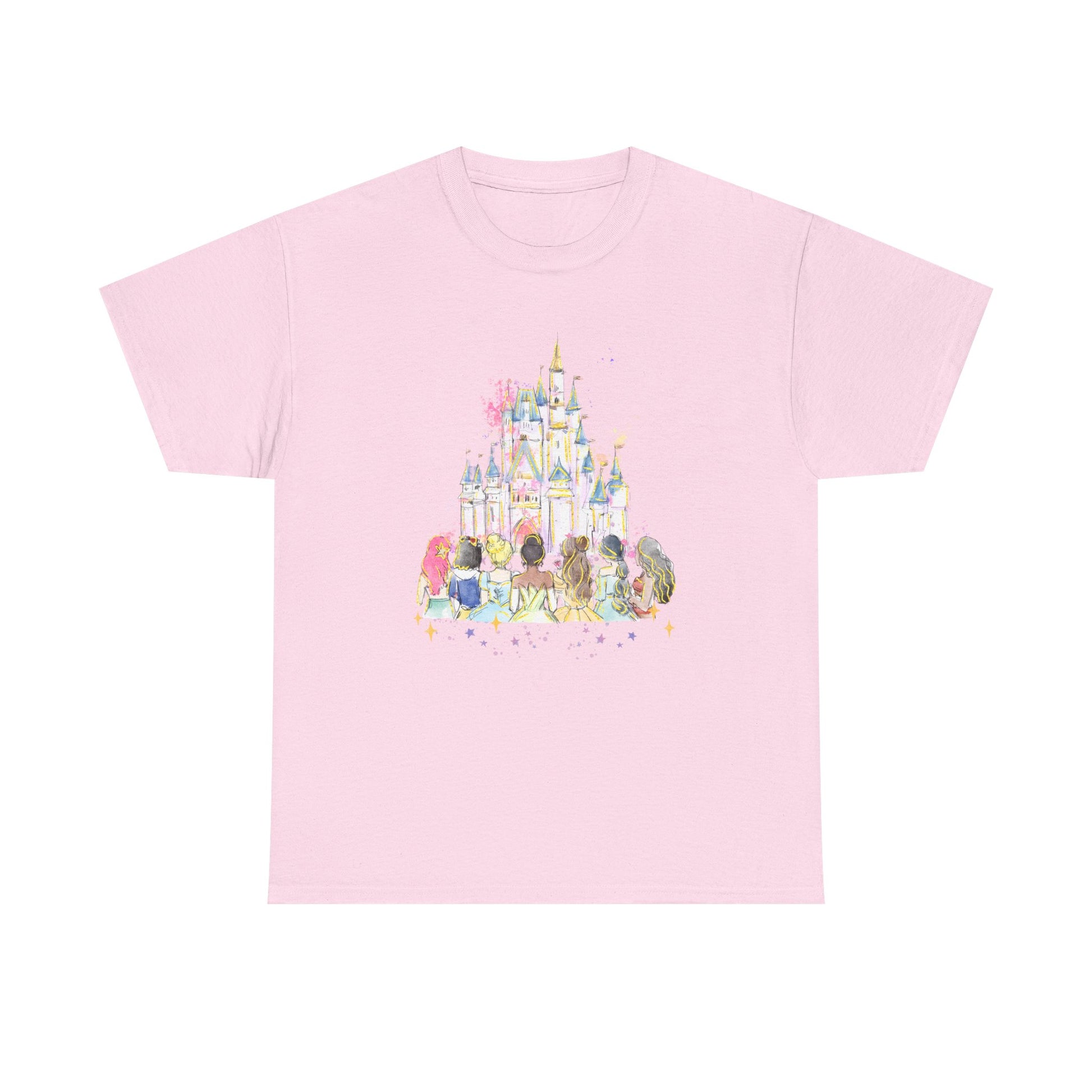 Princess castle pastel T-Shirt that exudes a whimsical and dreamy vibe, perfect for those who love fairytales and fantasy. Ideal for casual wear, themed parties, and princess-themed events.