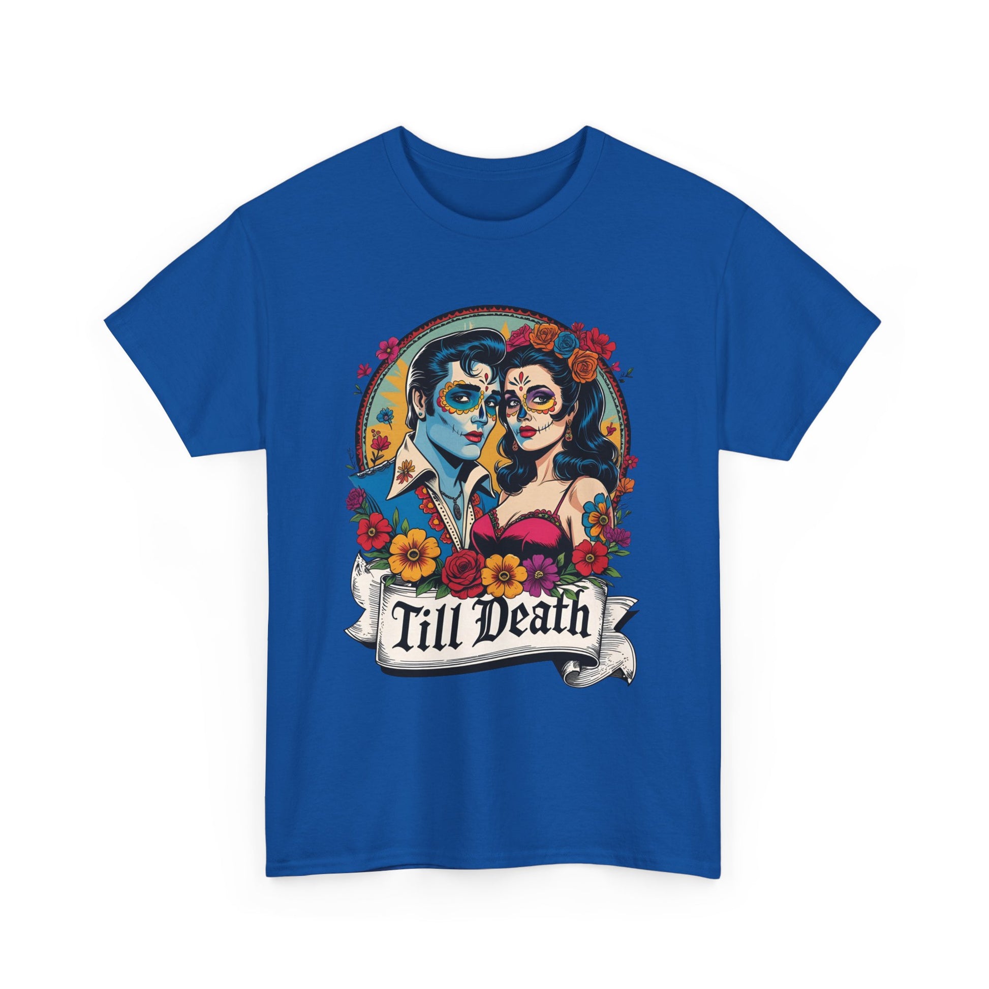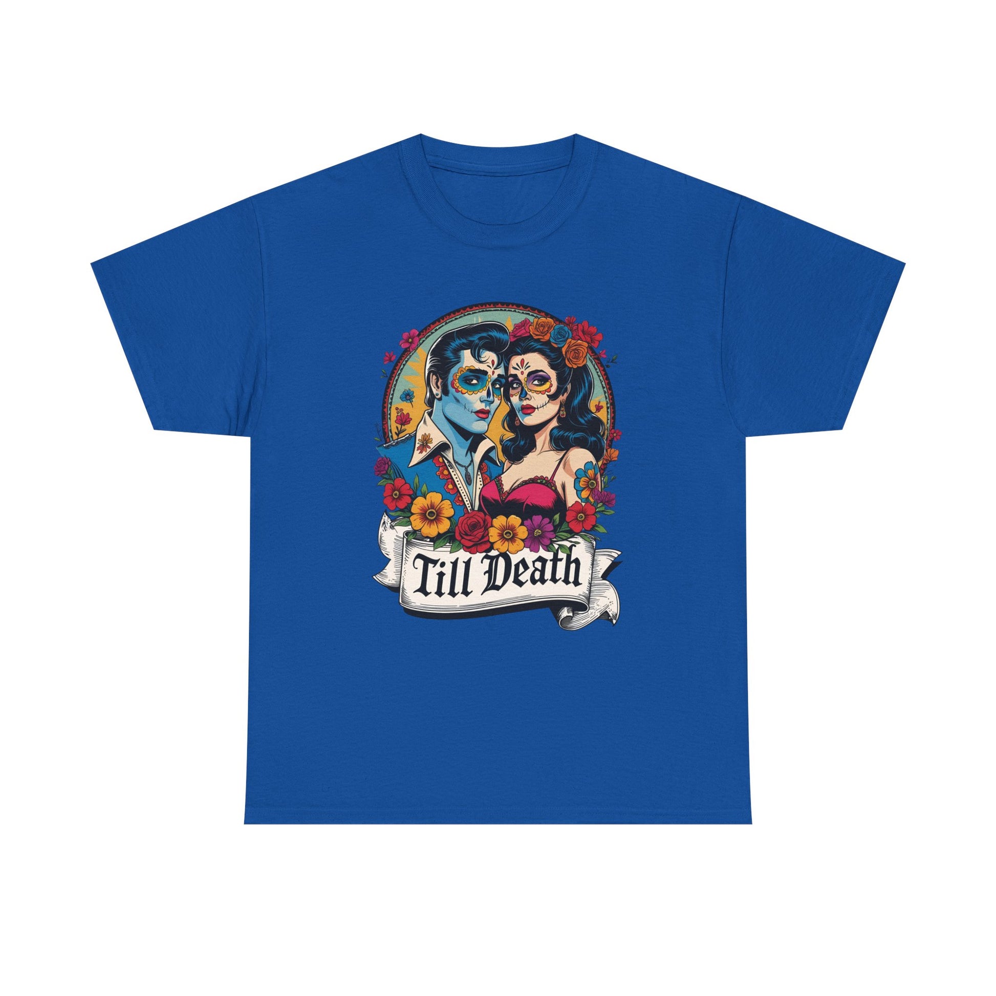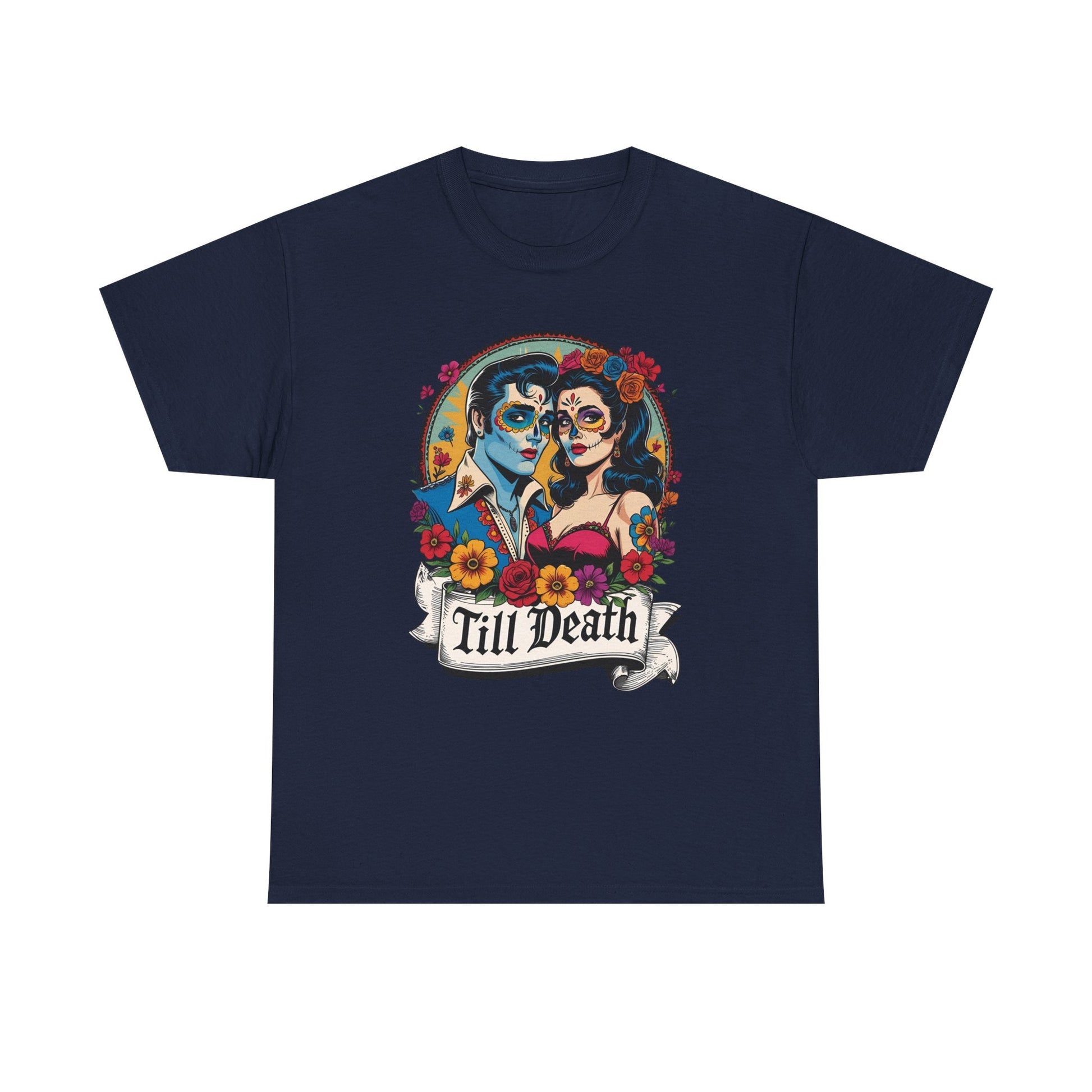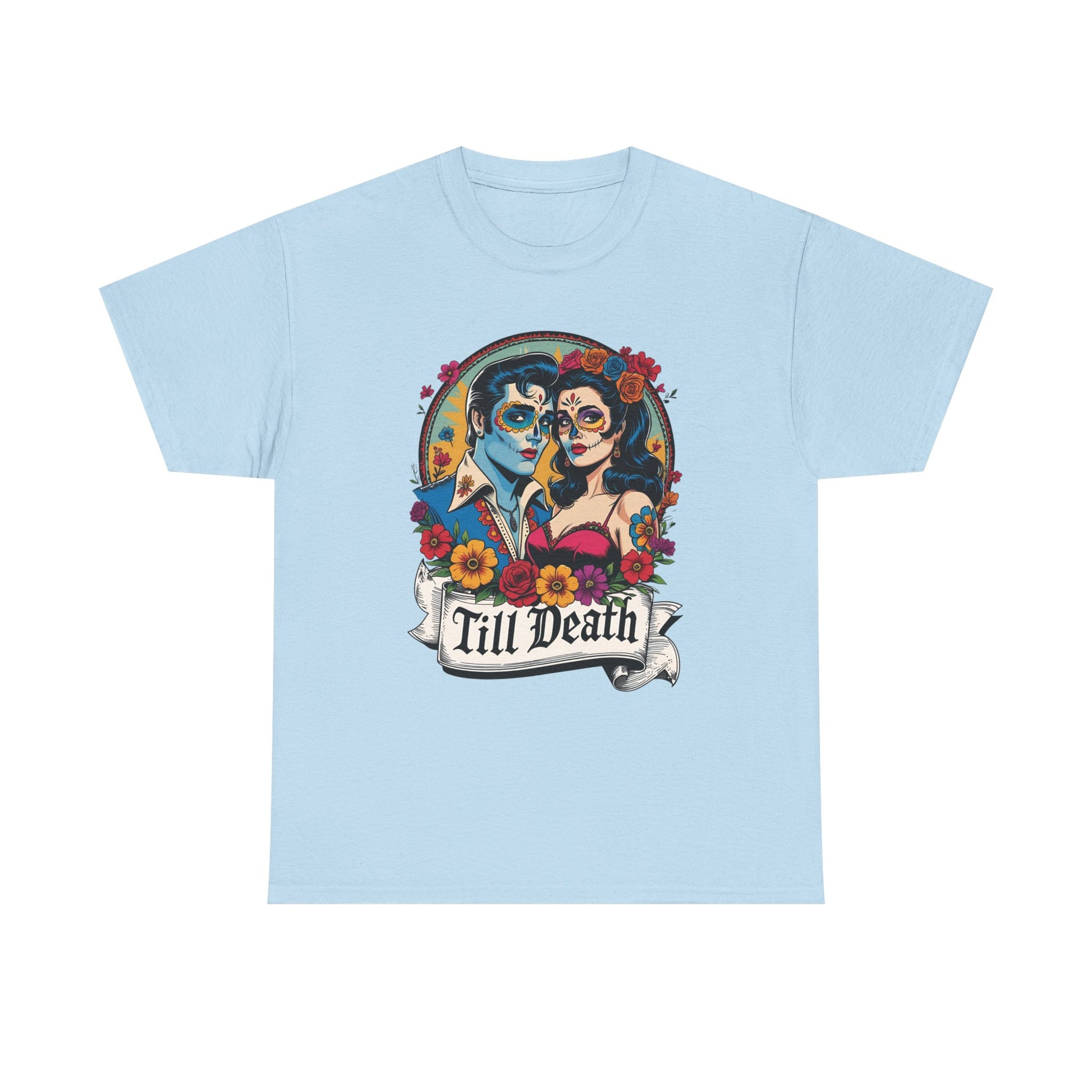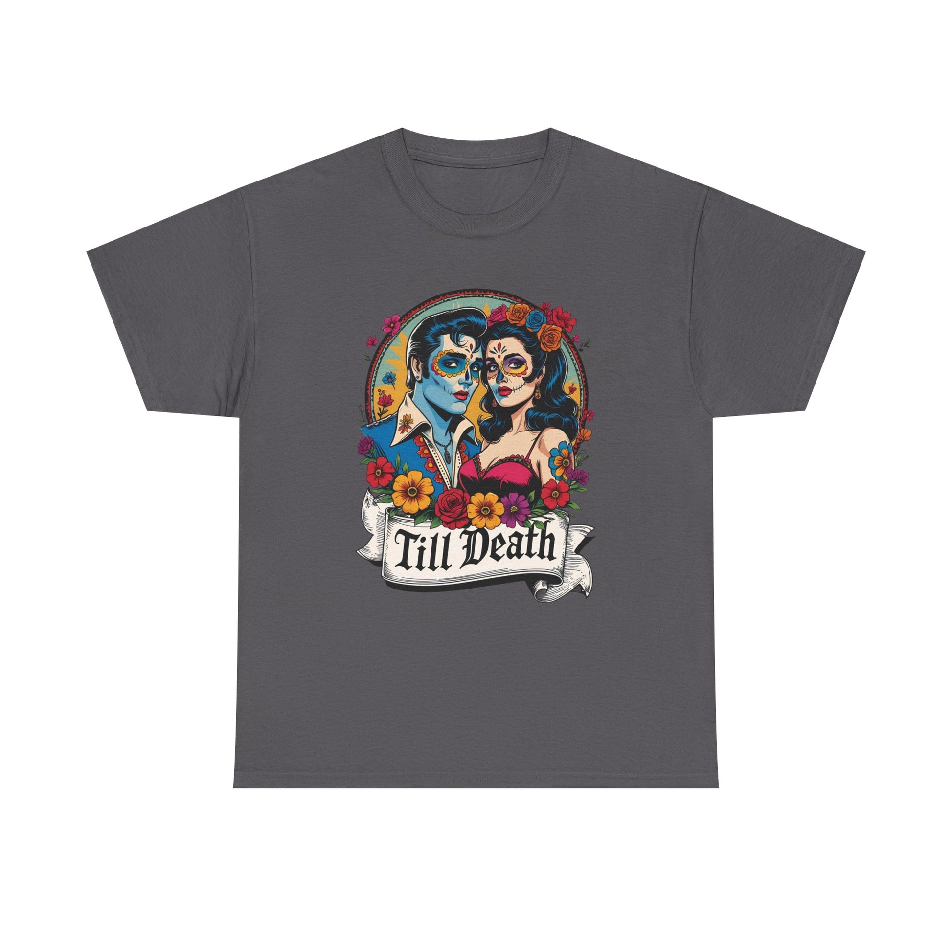 Till Death Unisex Heavy Cotton Tee, Casual Graphic T-Shirt, Gothic Style Shirt, Couples Gift, Halloween Apparel, Everyday Wear