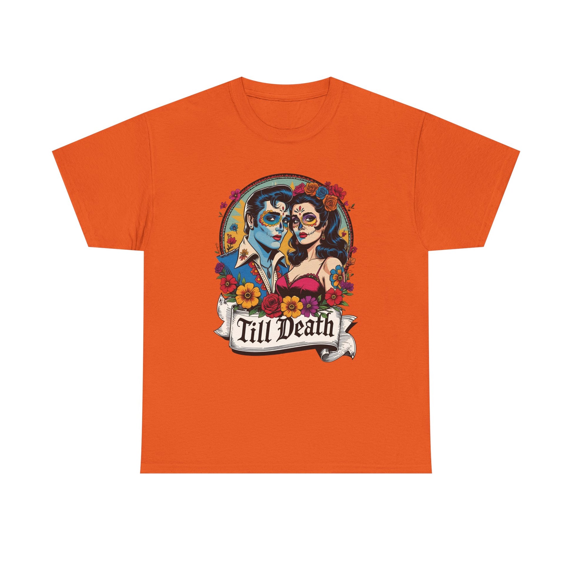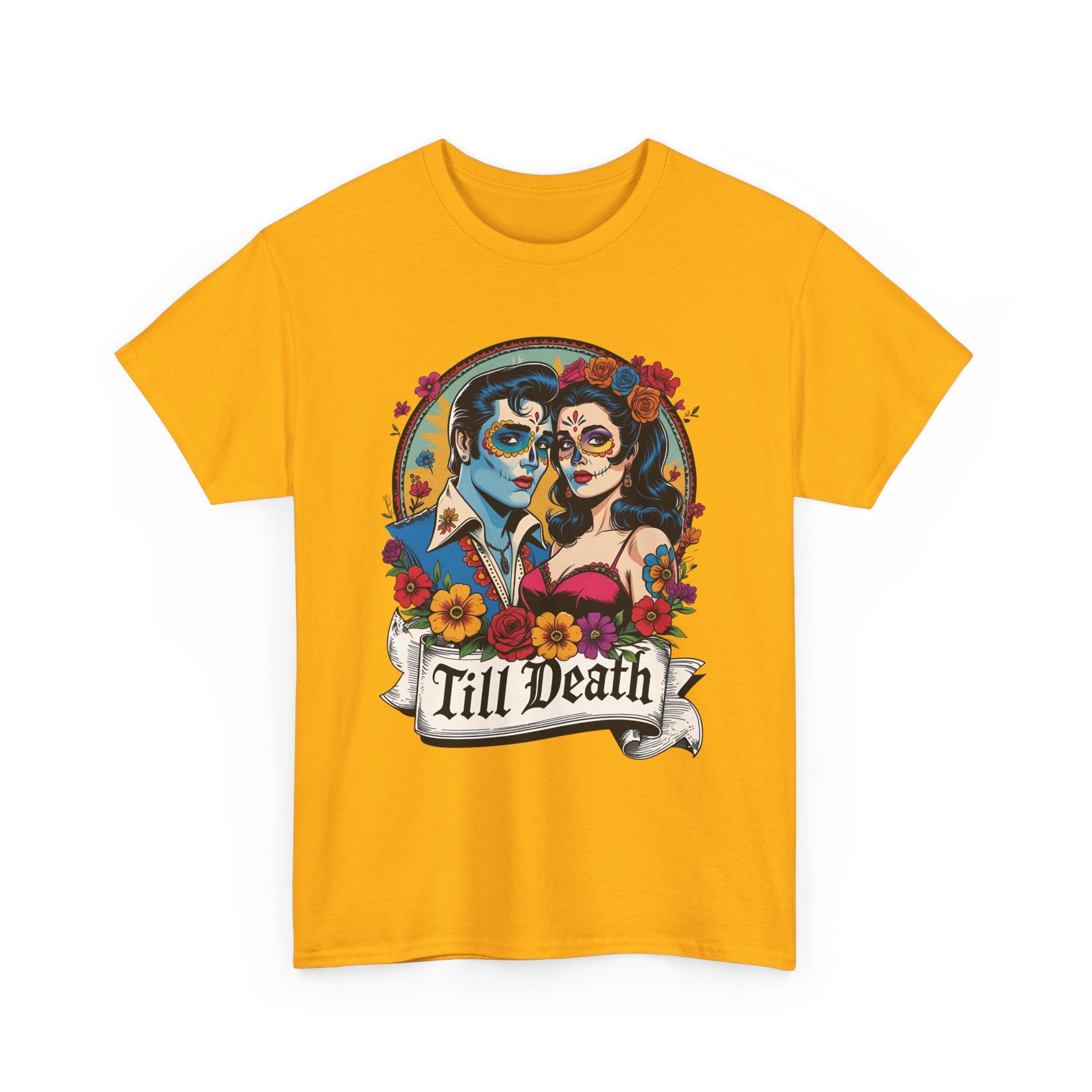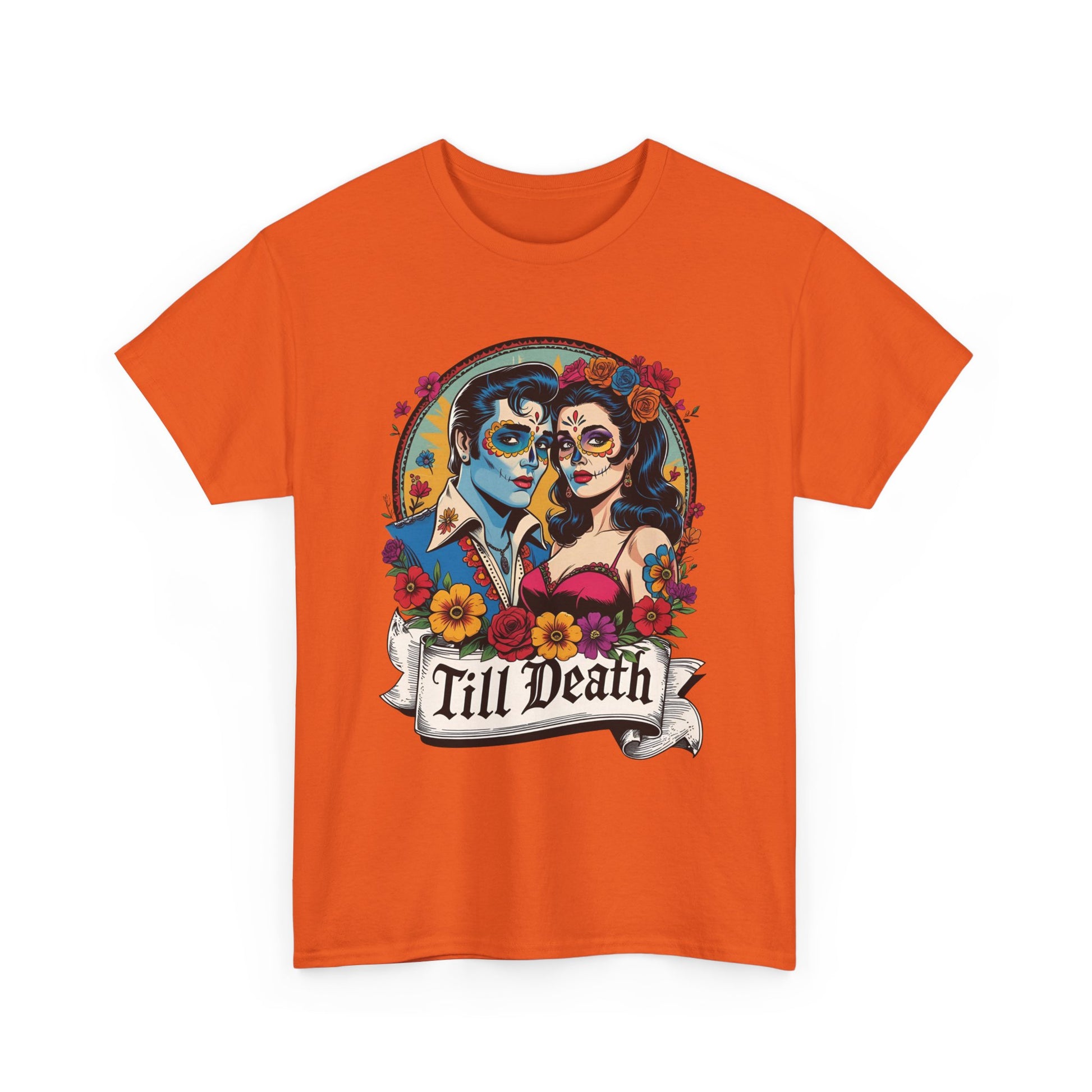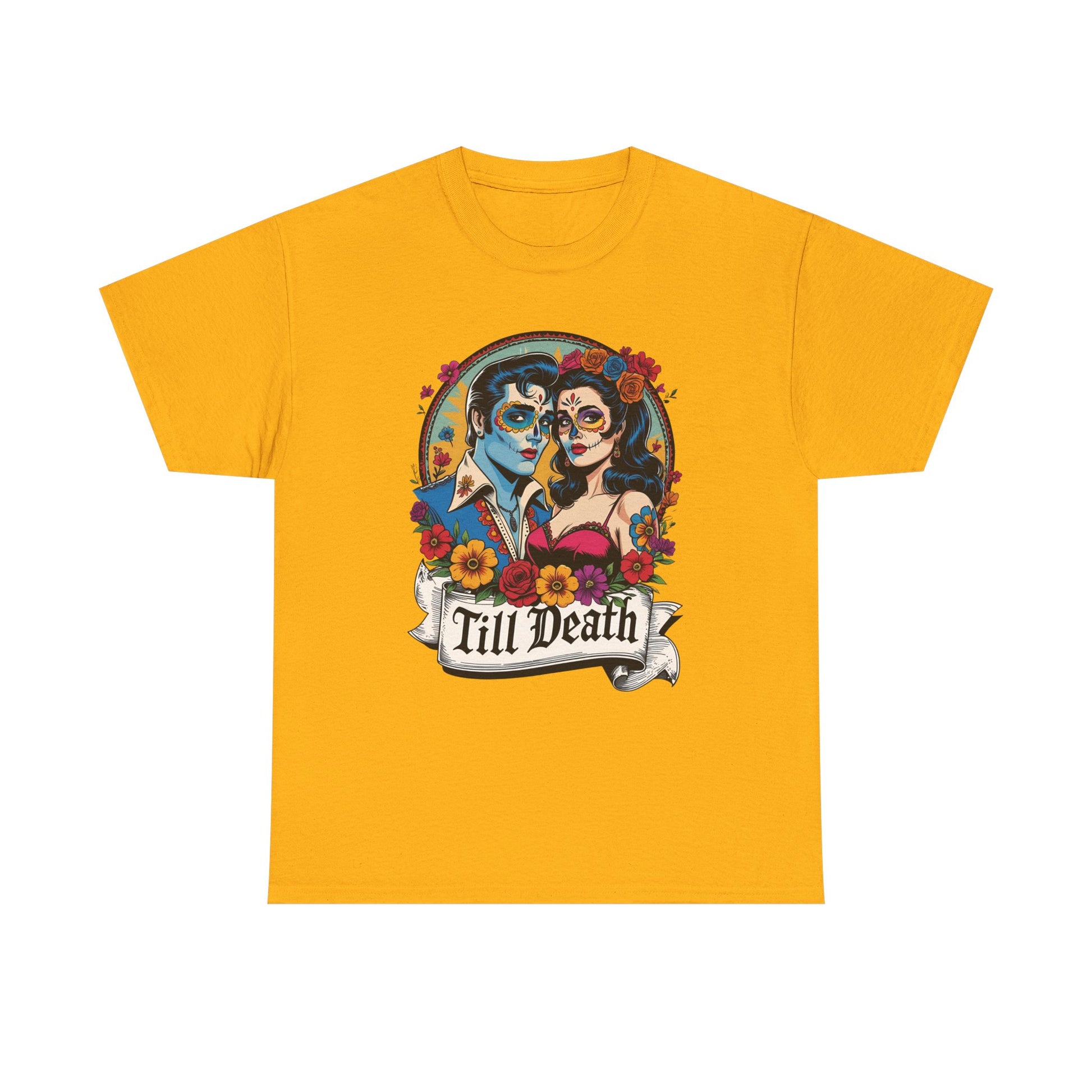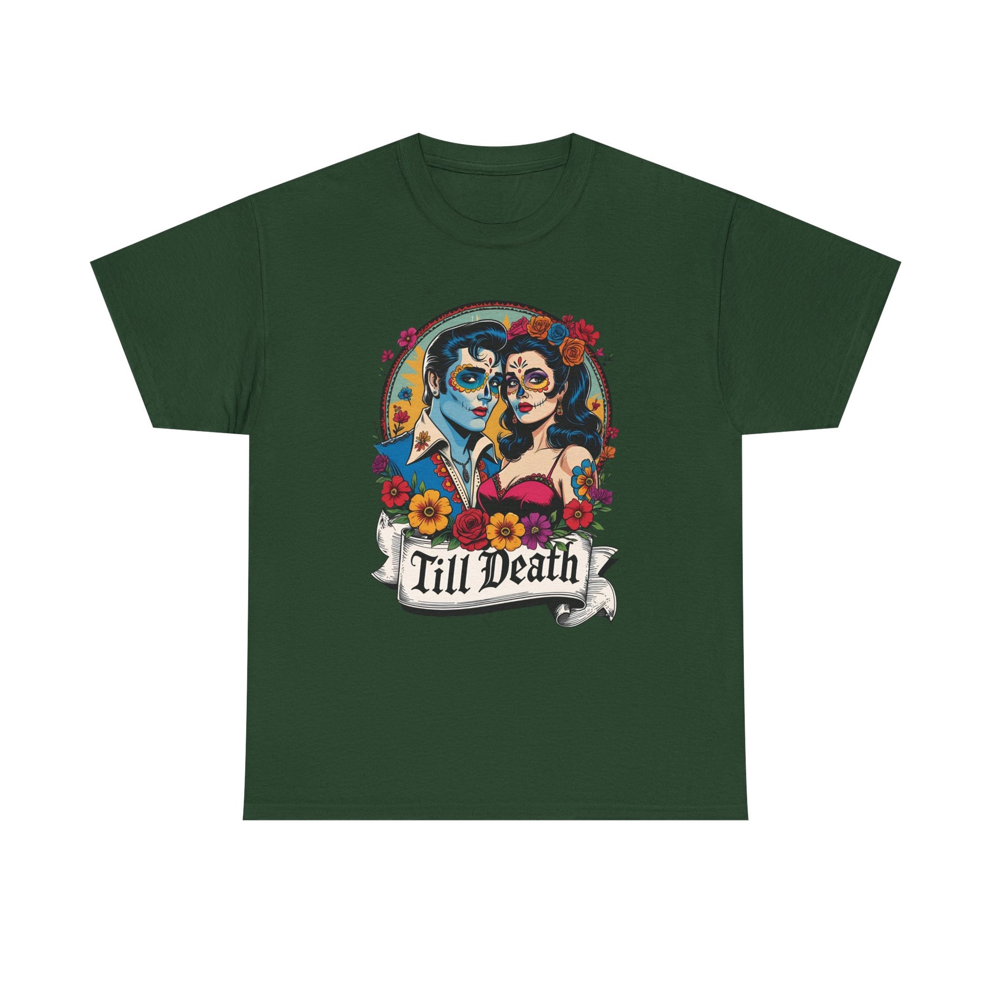 Till Death Unisex Heavy Cotton Tee, Casual Graphic T-Shirt, Gothic Style Shirt, Couples Gift, Halloween Apparel, Everyday Wear
